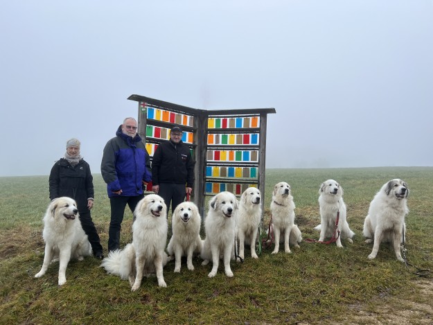 Selbst Regenwetter und gerade mal 10°C konnte 23 Pyrenäenberghunde und 1 Schäfermischling mit ihren Dosenöffnern nicht davon abhalten bei der Hunderallye zu starten. In zweier Teams ging es auf den 5km langen Rundweg, der mit vielen Aufgaben für Zwei- und Vierbeiner gespickt war. Der Spaß und die Freude an den Hunden standen im Vordergrund und zur Belohnung kam am Schluss auch noch ein bisschen die Sonne raus.