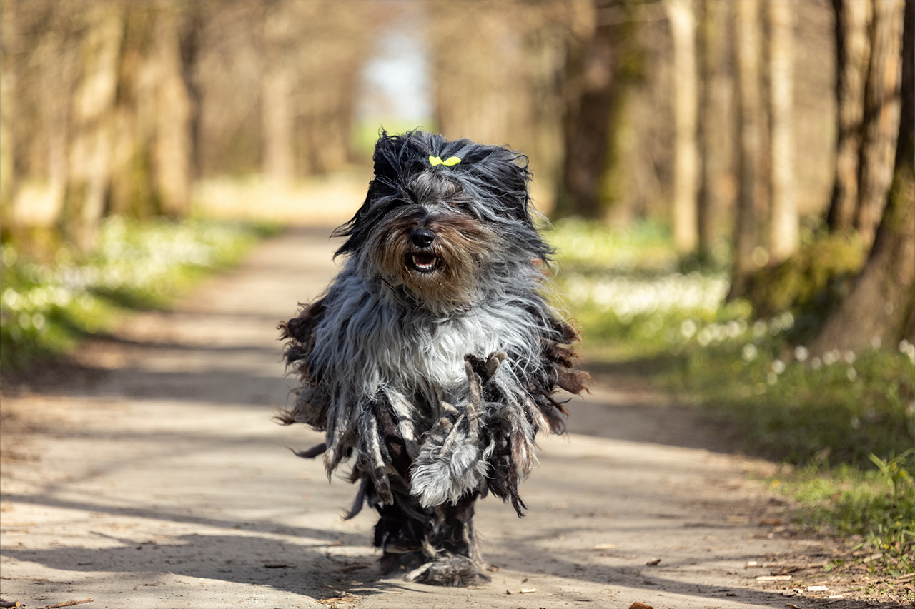 Die Pflege des besonderen Haarkleides ist – entgegen der allgemeinen Meinung – mit vergleichsweise wenig Aufwand verbunden. Die typische Haarstruktur entwickelt sich weitgehend von selbst. Ein gelegentliches, leichtes Überbürsten genügt, um dem Hund ein gepflegtes und harmonisches Erscheinungsbild zu verleihen.
